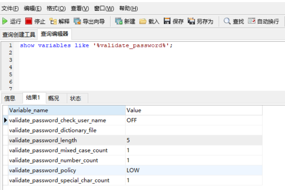 4、密码复杂性的修改,这个我们通常也需要调整一下,但是按需要修改即可,在my.cnf文件中 [mysqld] 下,参数如下: