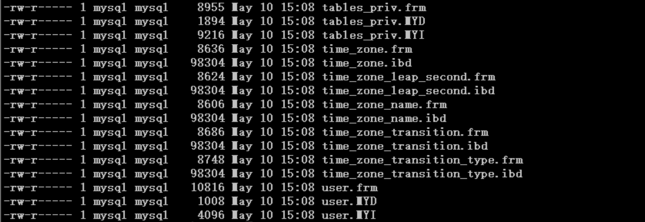 可以看到user 表是MyISAM存储引擎,time_zone_transition_type 表就是InnoDB , time_zone_transition_type.idb 文件就是该表的独立表空间。